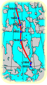 other observations made in the vicinity, showed that the pole had moved some 250 km northwest since the time of Amundsen's